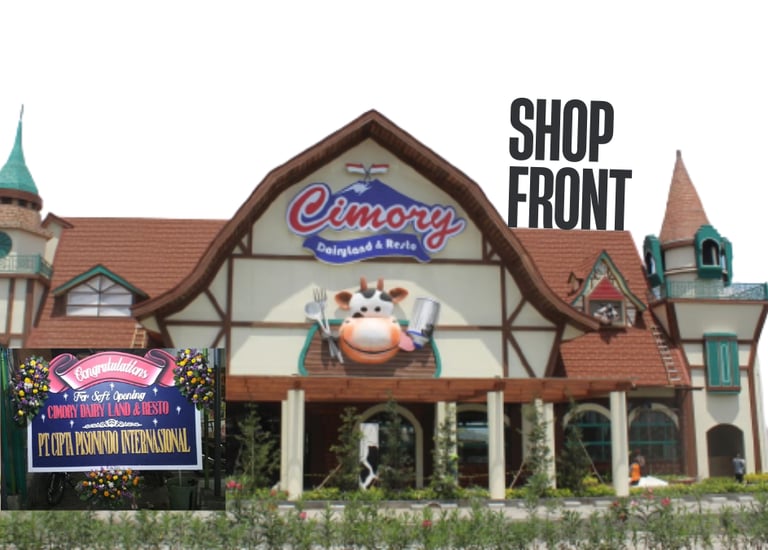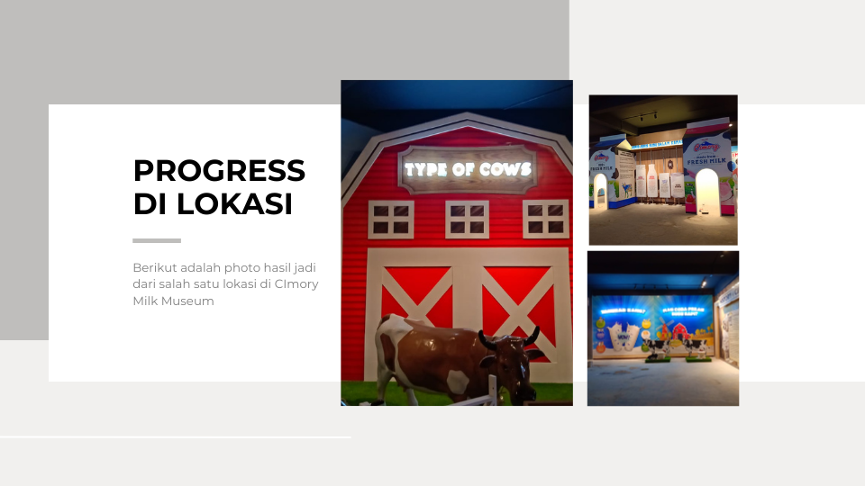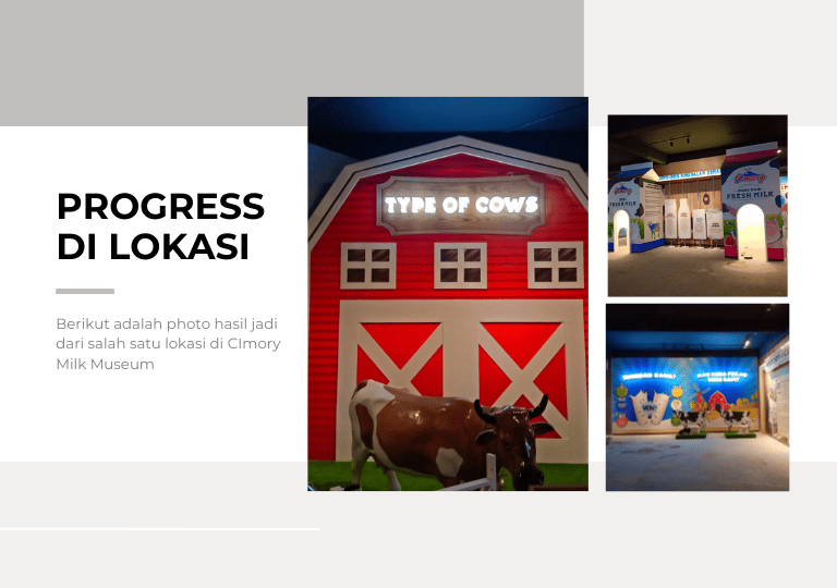 Dalam project theme park Cimory ini kami mengerjakan interior & fixture di area Milk Museum dan Cow House