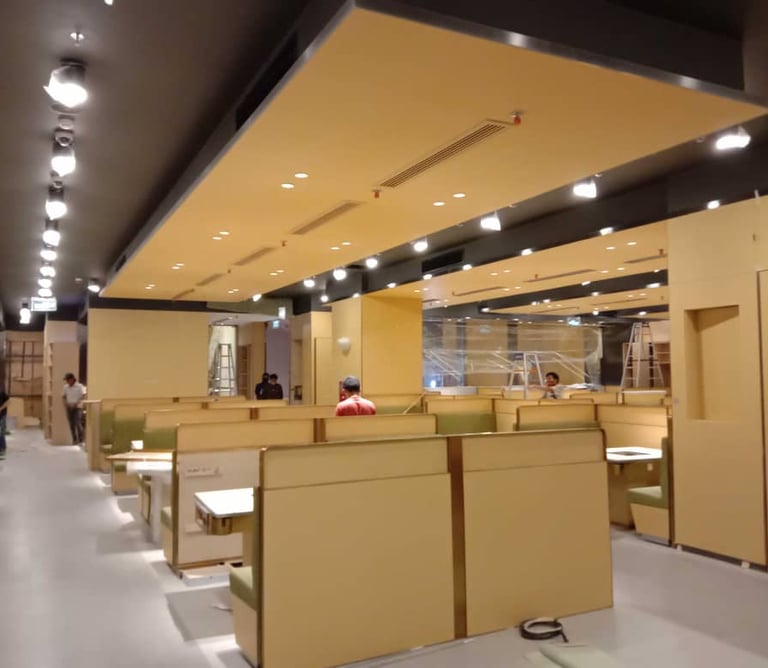 Ceiling Work, Partition Work, Padded Wall, Furniture Instalation in Level 1 & Level 2